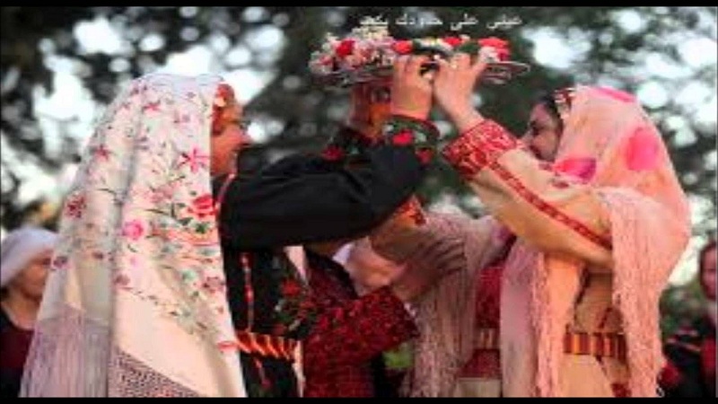 وهناك طقوس فلسطينية عند طلب العروس، حيت تردد الأمهات بعض الكلمات مع إيقاع صوتي، كـ  "اعطونا عروستنا نلبسها حرير".