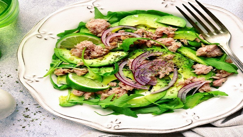 - اخلطي الخيار والأفوكادو والبصل والتونا والكزبرة في طبق.