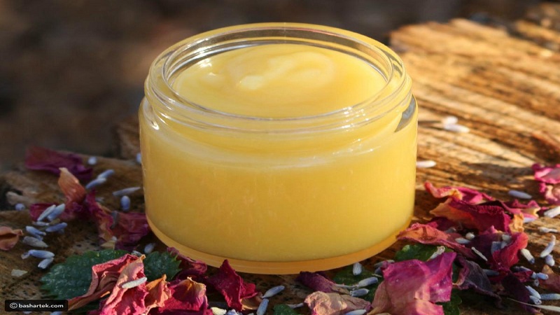 - عندما تصبح الزبدة سائلة اخلطيها جيداً مع زيت ثمر الورد وجل الصبار، وإذا كنت ترغبين بإضافة زيتك العطري فأضيفيه بسرعة.