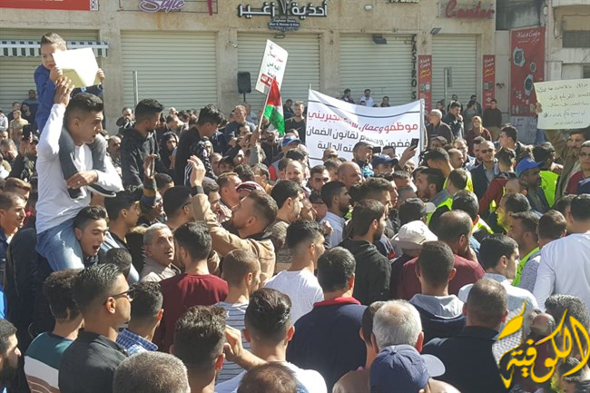 الكوفية الخليل|| اعتصم المئات من العمال، يوم الخميس، في منطقة دوار ابن رشد وسط محافظة الخليل، رفضا لقرار تطبيق قانون الضمان الاجتماعي.