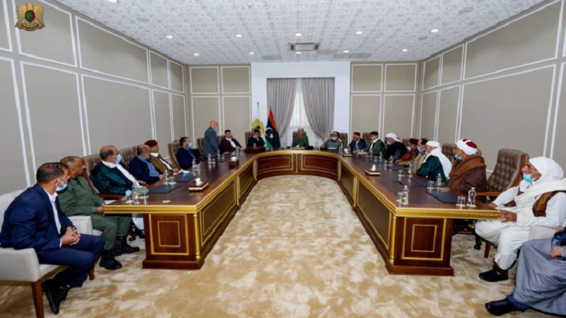 جاء ذلك خلال لقاء القائد العام للقوات المسلحة الليبية المشير أركان حرب خليفة حفتر، وفدًا من شيوخ وأعيان قبيلة المنفة في مكتبه بمقرّ القيادة العامة.