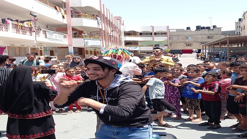 متابعات: نفذ نشطاء فلسطينيون، مبادرة "فرحة طفل" داخل مراكز الإيواء، في قطاع غزة.