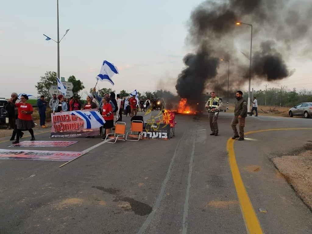 وأشارت إلى أن المستوطنين المحتجين، قاموا بإشعال الإطارات ومنعوا دخول شاحنات البضائع لقطاع غزة.