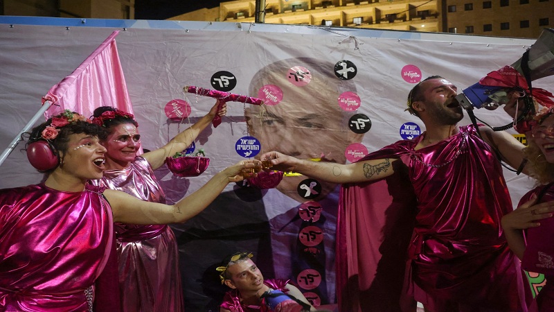 متظاهرون يحتفلون بانتصارهم على نتنياهو بقرع الطبول وأغنية "بيلا تشاو"