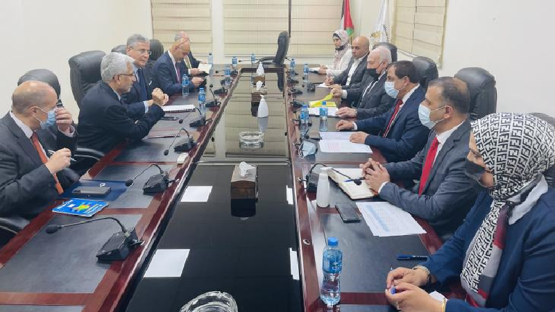 واطلع الوفد، على جهود الحكومة الفلسطينية في مواجهة انعكاسات وآثار وباء كورونا وحجز أموال المقاصة لعدة أشهر خلال الأعوام 2019- 2020 على كافة نواحي الاقتصاد الفلسطيني والمالية العامة.