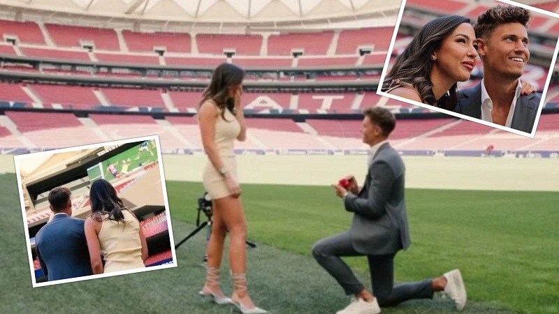 بالفيديو|| نجم أتلتيكو مدريد يطلب يد صديقته للزواج على أرضية الملعب