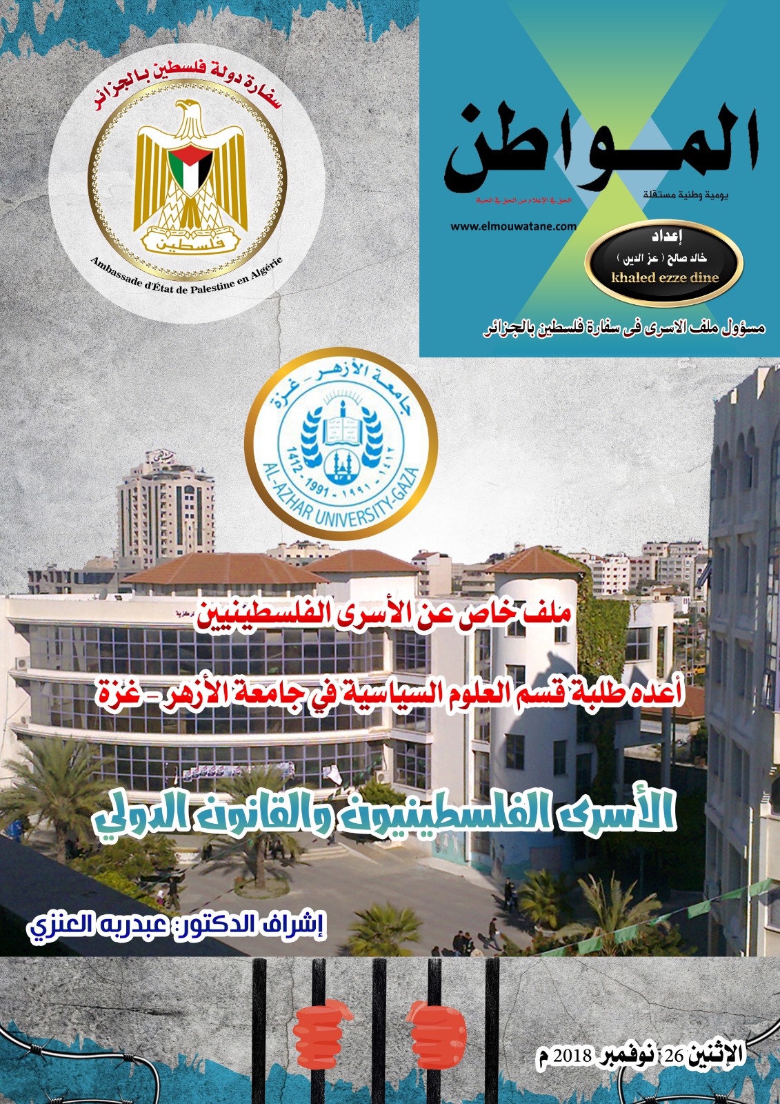 وقد تم إعداد هذا الملف بالتعاون مع جامعة الأزهر، حيث أعد طلبة قسم العلوم السياسية تحت اشراف الدكتور عبدربه العنزي عدداً خاصاً عن قضية الأسرى الفلسطينيين من منظور القانون الدولي، حيث رصد الطلبة في مقالاتهم مجموعة من الموضوعات، أهمها: مدخل حقوق الأسرى في القانون الدولي، وحقوق الأسرى في القانون الدولي، وعن الموقف الدولي من الانتهاكات الاسرائيلية للأسرى الفلسطينيين، وتجارب الاعتقال الاداري في السجون الاسرائيلية،  والأبعاد القانونية لقضية الاسرى الفلسطينيين في السجون الاسرائيلية، وقد جاءت هذه المبادرة من طلبة قسم العلوم السياسية في جامعة الأزهر للتأكيد على تمسكهم بمناصرة قضية الاسري الفلسطينيين، وكتوجه لتسخير المؤسسات التعليمية العليا في تبني قضايا الشعب الفلسطيني على رأسها الاسرى في سجون الاحتلال، وتوظيف الطاقات العلمية خدمة للشعب الفلسطيني.
