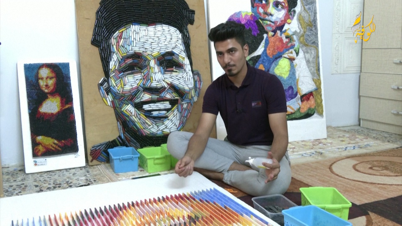 ويدرس جمال، العراقي البالغ من العمر 26 عاما، الهندسة المعمارية في الجامعة ويستغل أي مواد يمكنه الوصول إليها بسهولة حتى وإن كان من غير المعتاد ربطها برسم لوحات بورتريه وهي طريقة يعتبر أنها تميزه عن غيره.