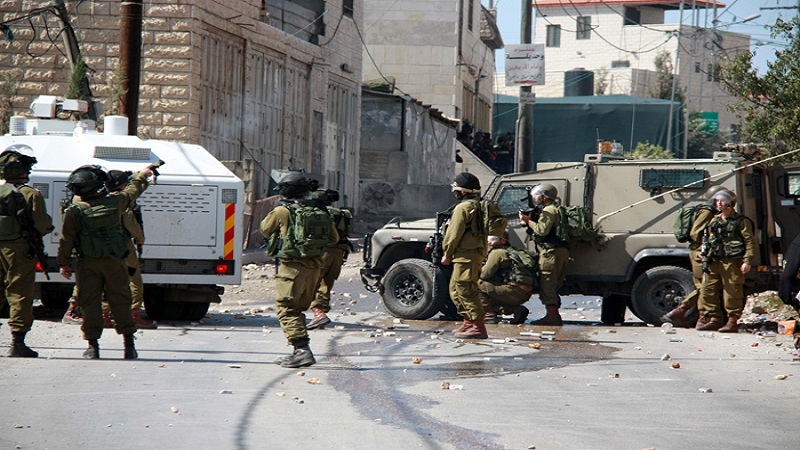 الخليل: هاجمت قوات الاحتلال الإسرائيلي، ظهر اليوم، اليوم الجمعة، موكب تشييع الشهيد شوكت عوض، في بلدة بيت أمر، شمال الخليل.