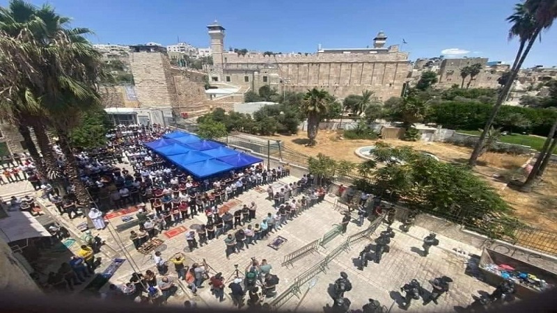 الخليل: قمعت قوات الاحتلال الإسرائيلي، المصلين وأطلقت قنابل الغاز والصوت لتفريقهم، عقب صلاة الجمعة، في المسجد الإبراهيمي، وسط الخليل، في الضفة الفلسطينية.