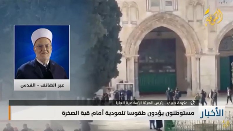 وحمل صبري، حكومة الاحتلال المسؤولية عن أي مسّ بحرمة المسجد الأقصى من قبل المستوطنين، مؤكدًا أن هناك تناقضًا في موقف الحكومة التي تدعي أنها لا تريد تصعيدًا بالمدينة المقدسة وفي نفس الوقت تحمي جماعات المستوطنين.