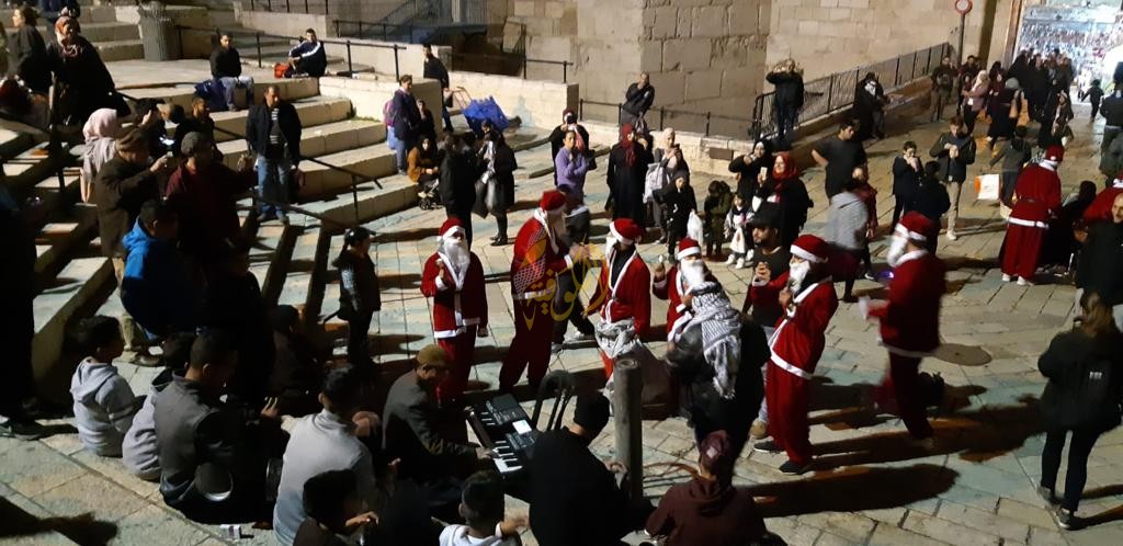 وانتشر نشطاء التجمع الوطني، في شوارع القدس والبلدة القديمة مرتدين زي سانتا كلوز طيلة ساعات عصر اليوم، ووزعوا الحلوى على الأطفال، كما أنشدوا الأناشيد الوطنية وأغاني الأطفال برفقة فرقة عمر جابر الموسيقية.