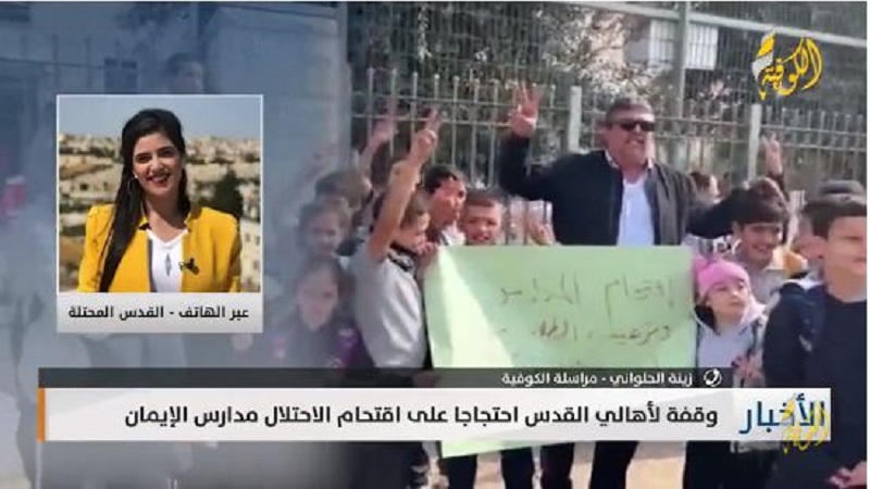 وأضافت، على الجانب الآخر، أن أولياء أمور الطلبة في مدارس الإيمان والإبراهيمية نظموا وقفات احتجاجية رافضة لاقتحام مفتشي وزارة المعارف في حكومة الاحتلال مقار المدارس وتفتيش حقائب الطلبة بحثا عن المنهاج الفلسطيني، مع توقعات بالتصعيد.