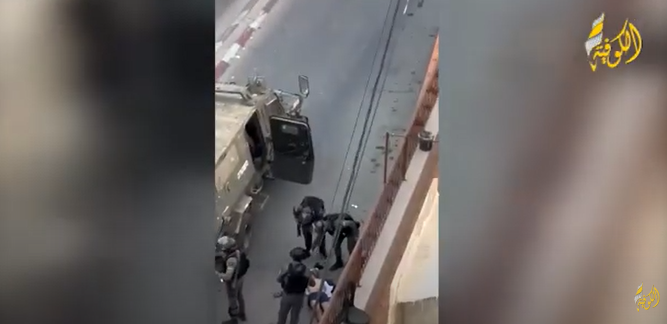 لحظة محاولة جنود الاحتلال اعتقال شاب مصاب في أبو ديس