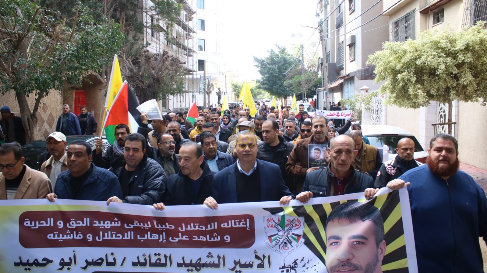 وقال مسؤول الأسرى في حركة فتح ساحة غزة سامي أبو نحل، إن المسيرة جاءت للتضامن مع والدة الشهيد الأسير أبو حميد وللمطالبة بتسليم جثمانة وجميع الأسرى المحتجزة جثامينهم في ثلاجات الاحتلال الذي يرفض تسليمها لذويهم في اختراق فاضح لكافة القوانين والمواثيق الدولية.