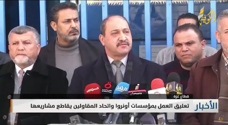 تعليق العمل بمؤسسات أونروا واتحاد المقاولين يقاطع مشاريعها