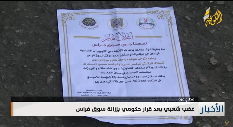 غزة: غضب شعبي بعد قرار حكومي بإزالة سوق فراس