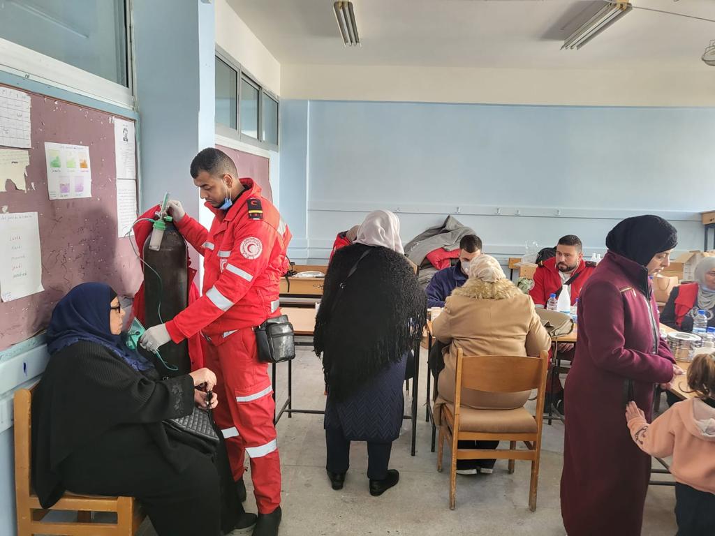 وفيما يتعلق بأعضاء الفريق من الهلال الأحمر، فقد قاموا بتفعيل عمل النقطة الطبية في مخيم الرمل الجنوبي، مركز إيواء مدرسة الخيرية، من خلال تقديم الإسعافات الأولية والطبية العاجلة لأهالي المخيم عامة، وللقاطنين بمراكز الإيواء خاصة، من خلال العمل على ثلاث ورديات على مدار الساعة، حيث قاموا بالتعامل مع عشرات الحالات.