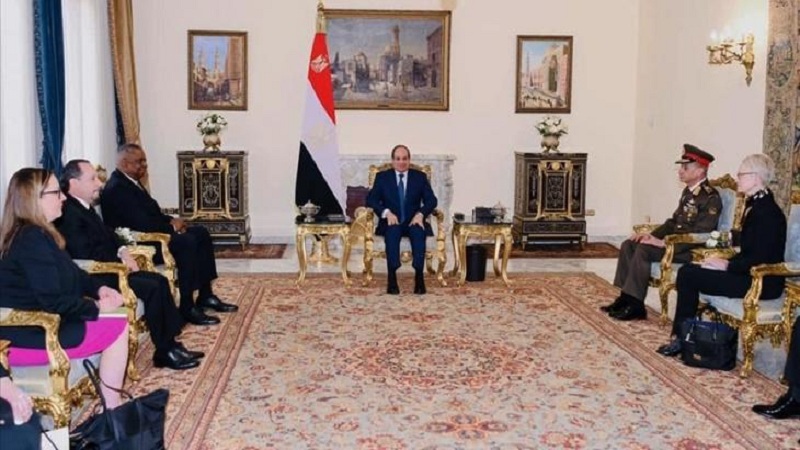 وشدد السيسي، خلال لقاءه وزير الدفاع الأمريكي لويد أوستن بقصر الرئاسة في القاهرة اليوم الأربعاء، على أهمية تكثيف جهود إعادة التهدئة للأراضي الفلسطينية.