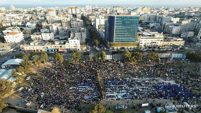 المواطنون يؤدون صلاة العيد في غزة بالساحات العامة
