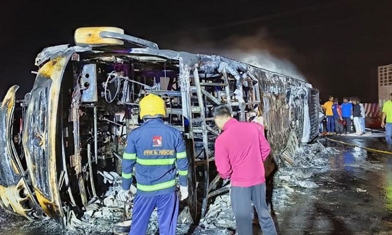 بومباي: لقي ما لا يقل عن 25 شخصا حتفهم وأصيب ثمانية آخرون بجروح بعد اشتعال النيران في حافلة خلال الليل على طريق سريع في ولاية ماهاراشترا وسط الهند.