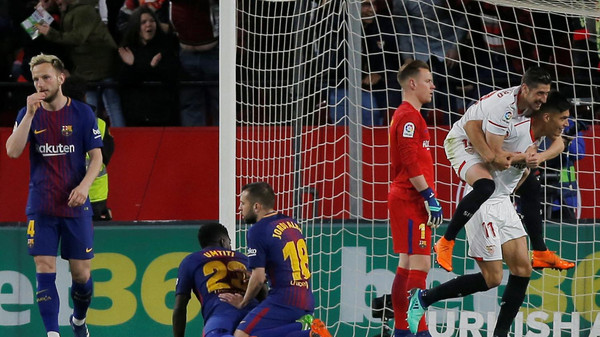 وكان إشبيلية في طريقه لكسر سجل برشلونة الخالي من الهزائم في الدوري الإسباني لكرة القدم هذا الموسم وإلحاق الهزيمة الأولى به في المسابقة هذا الموسم بالتغلب عليه 2 - صفر لكن سواريز وميسي أحرزا هدفين في الوقت القاتل ليقودا الفريق الكتالوني للتعادل الثمين.
