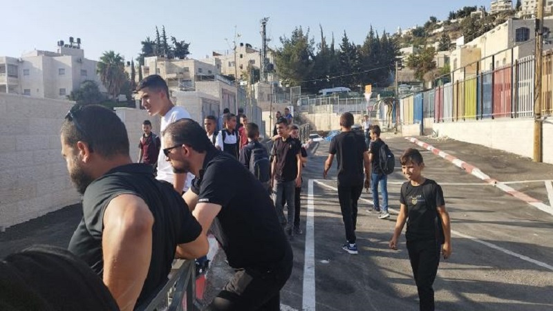 واعتصم أهالي جبل المكبر صباح أمام المدرسة الثانوية الجديدة، التي يصر الاحتلال على فتحها بنظام المنهاج الإسرائيلي "البجروت".