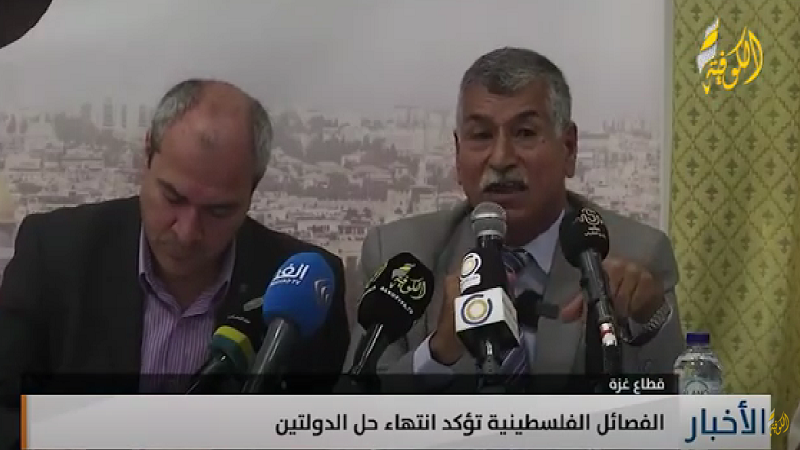 ومن جانبه، قال عضو المكتب السياسي للجبهة الديمقراطية طلال أبو ظريفة، إن خيار الدولتين انتهى فعليا على الأرض، مضيفا أن مصطلح حل الدولتين طرح في العام 2002 وفشل فشلا ذريعا في تحقيق أفق سياسي.