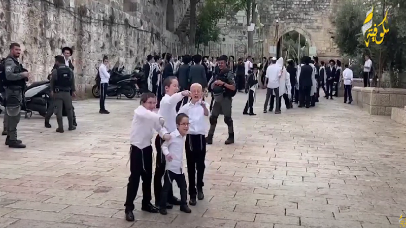 رقص وغناء المستوطنين عند باب الأسباط، أحد أبواب المسجد الأقصى
