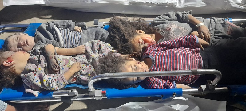 استشهد 6 مواطنون من عائلة النوري وبدوان بينهم 5 أطفال جراء قصف طائرات الاحتلال الحربية لشقة سكنية خلف مسجد القسام وسط مخيم النصيرات وسط قطاع غزة، الليلة، حسبما أفاد مراسل الكوفية.