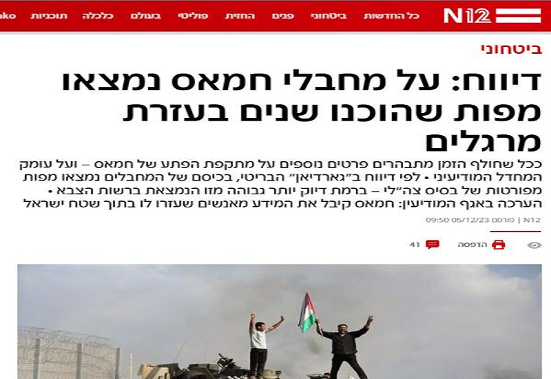 ذكرت القناة الـ12 العبرية، أنه تم العثور على خرائط تفصيلية بحوزة حركة حماس لقاعدة عسكرية إسرائيلية، إذ أنه لا يمكن العثور على هذه الخرائط إلا من خلال زرع جواسيس داخل دولة الاحتلال.