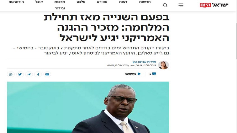 ترجمة للكوفية: كشفت صحيفة "يسرائيل هيوم" العبرية، النقاب عن أن وزير الدفاع الأمريكي لويد أوستن، سوف يصل إلى إسرائيل في الأيام المقبلة، وهذه هي زيارته الثانية منذ اندلاع العدوان على غزة.