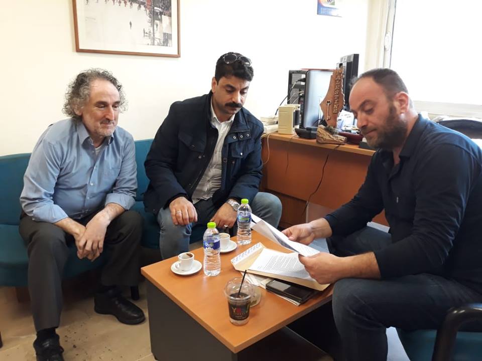 متابعات: قام أعضاء تيار الإصلاح الديمقراطي في حركه فتح، بساحه اليونان، نيابه عن المقطوعه رواتبهم في قطاع غزة، بتسليم رساله، لممثل رئيس الشبيبه اليساريه، "بأمي"، لوينيذاس ستولتيذيس، في مكتبه بمقر مركز اتحاد العمال في شمال اليونان، ولسكرتير اتحاد العمال اليوناني، وللحزب الشيوعي اليوناني، توضح السياسة التي تتبعها السلطه التنفيذية الفلسطينيه بحق أبناء قطاع غزة وأهالي الأسرى والشهداء والجرحى.