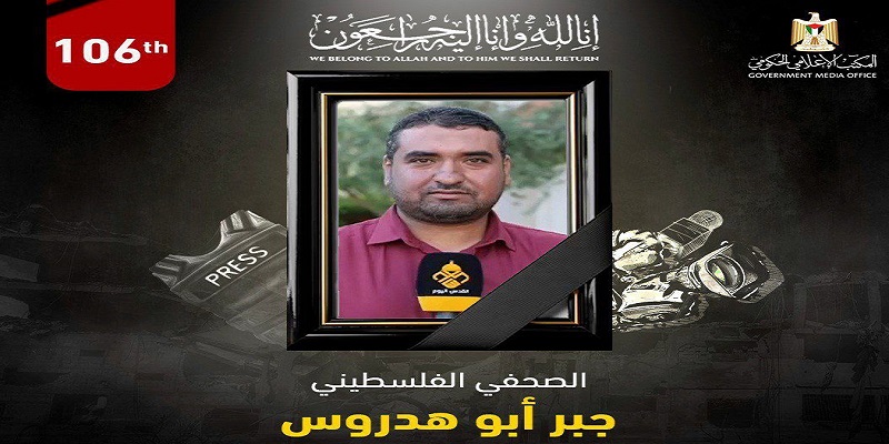 الإعلام الحكومي: ارتفاع عدد الشهداء الصحفيين إلى 106 منذ بدء حرب الإبادة على قطاع غزة