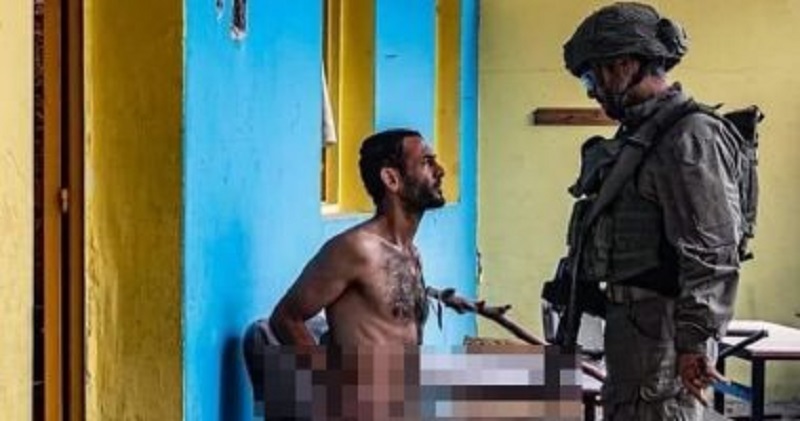 تداول نشطاء على مواقع التواصل الاجتماعي، مقطع فيديو نشره جندي إسرائيلي، يظهر التحقيق مع مواطن من أهالي غزة، تم خلع ملابسه وتقييد يديه وهو مصاب بجرح في ساقه.