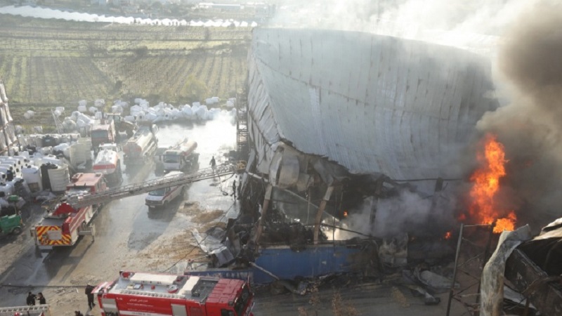 17 ساعة مرت ولا زالت عمليات مكافحة حريق المصنع في الخليل مستمرة