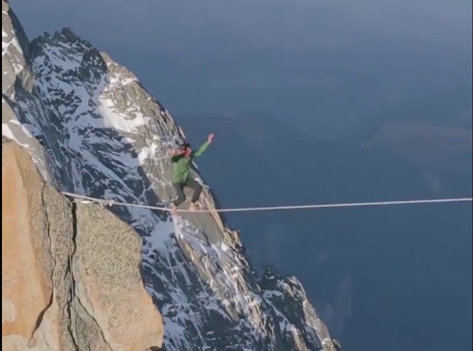 فيديو|| مغامر يفقد توازنه على حبل معلق بارتفاع ألف متر