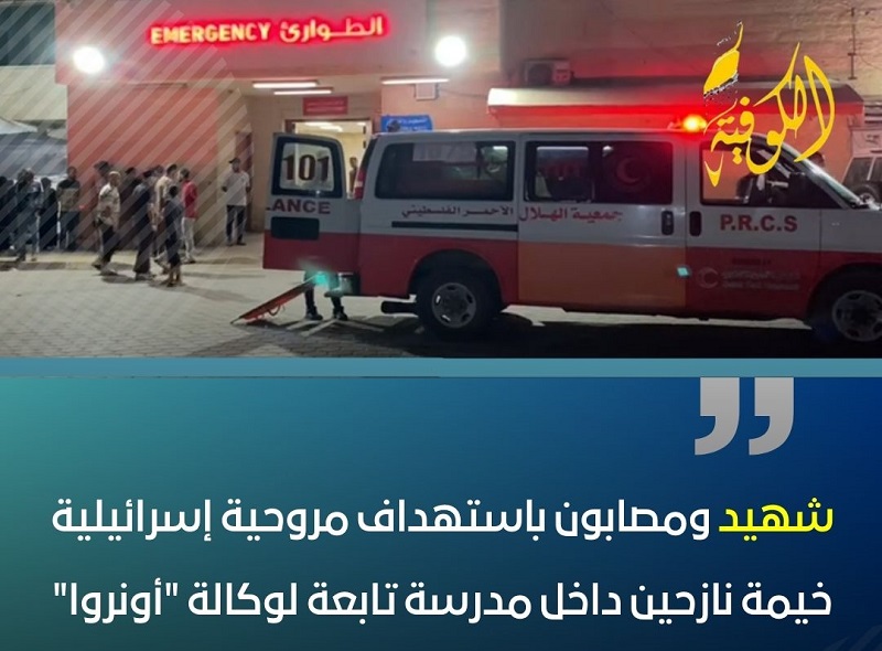 استشهد مواطن وأصيب عدد آخر جراء قصف طائرات الاحتلال خيمة نازحين داخل مدرسة تابعة لوكالة "أونروا" بمدينة دير البلح وسط قطاع غزة، فجر اليوم الخميس، حسبما أفاد مراسلنا.