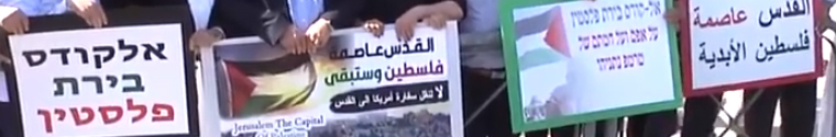 وأطلق المتظاهرون شعارات مثل فلسطين باقية كما حملوا لافتات وأعلامًا فلسطينية وتركية وفرنسية وكتب على بعض اللافتات لن نتخلى أبدًا عن القدس وأوقفوا المجزرة.