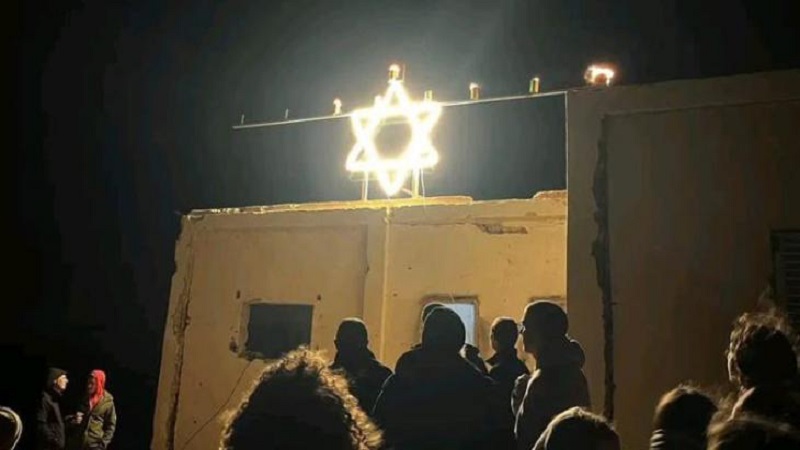 وأفاد مراسلنا بأن مجموعة من المستوطنين اقتحموا أحد المباني التاريخية في منطقة "خشم الدرج" بمسافر يطا، ورفعوا شمعدانا يهوديا مضيئا فوقه، وسط احتفالات صاخبة وصلوات تلمودية.