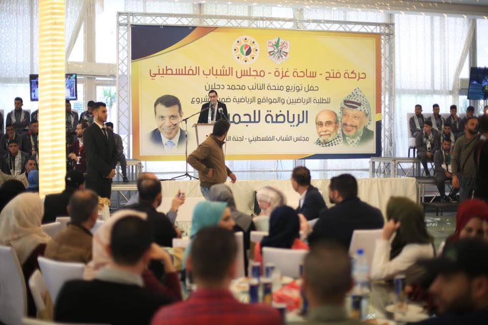 غزة: نظم مجلس الشباب في تيار الإصلاح الديمقراطي بحركة فتح، ساحة غزة، اليوم السبت، حفل توزيع منحة عضو المجلس التشريعي، القائد محمد دحلان، للطلبة الرياضين والمواقع الرياضية ضمن مشروع "الرياضة للجميع ".