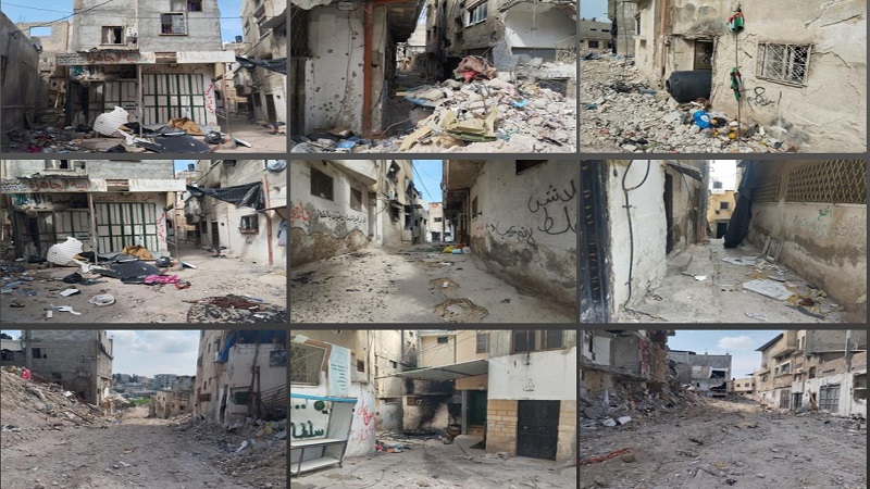 أما في مخيم نور شمس، فتواصل قوات الاحتلال حصارها المطبق عليه، مع دخول العدوان الشهر الثاني، مترافقا مع عمليات اقتحام للمنازل في حارة الدمج، حيث أقدمت على تخريب محتوياتها بعد تفتيشها وإخضاع سكانها للاستجواب، وسط سماع أصوات إطلاق النار، تزامنا مع التدمير الذي ألحقته جرافاتها بالبنية التحتية، وهدم للمنازل في حارة المنشية بشكل كامل طال أكثر من 28 منزلا، ضمن مخططها لشق طرق وتغيير المعالم الجغرافية للمخيم.