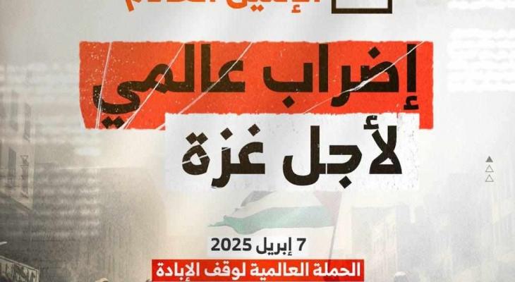 دعت الحملة العالمية لوقف الإبادة على قطاع غزة، لإضراب عالمي يوم الإثنين 7 إبريل/ نيسان الجاري، للمطالبة بوقف حرب الإبادة الإسرائيلية على القطاع.