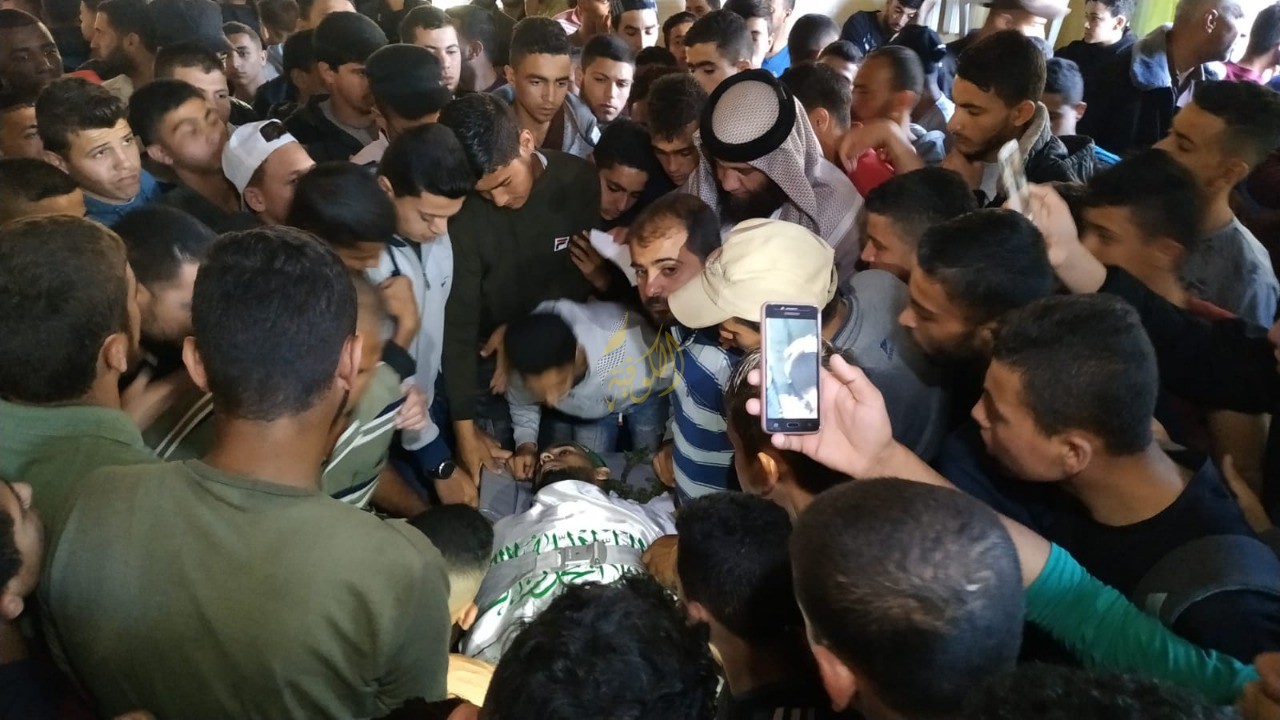 وحمل المشيعون جثمان الشهيد من المشفى الاوربي وصولا الى منزله لالقاء نظرة الوداع الاخيرة قبل ان يصلى عليه والانطلاق بجثمانه نحو مقبرة المدينة.