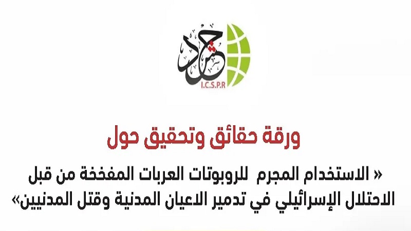 أصدرت الهيئة الدولية لدعم حقوق الشعب الفلسطيني (حشد) ورقة حقائق وتحقيق موسّعة أعدّتها الباحثة لبنى ذيب، بعنوان: “الاستخدام المجرّم للروبوتات العربات المفخخة من قبل الاحتلال الإسرائيلي في تدمير الأعيان المدنية وقتل المدنيين”.