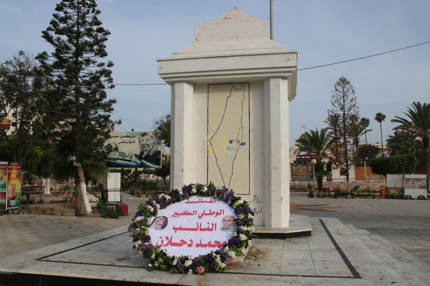غزة: وضعت حركة فتح تيار الإصلاح الديمقراطي في محافظة غزة، اليوم الأربعاء، "إكليلاً من الزهور باسم قائد التيار الإصلاحي في حركة فتح، ورئيس كتلتها البرلمانية محمد دحلان، على النصب التذكاري للجندي المجهول.