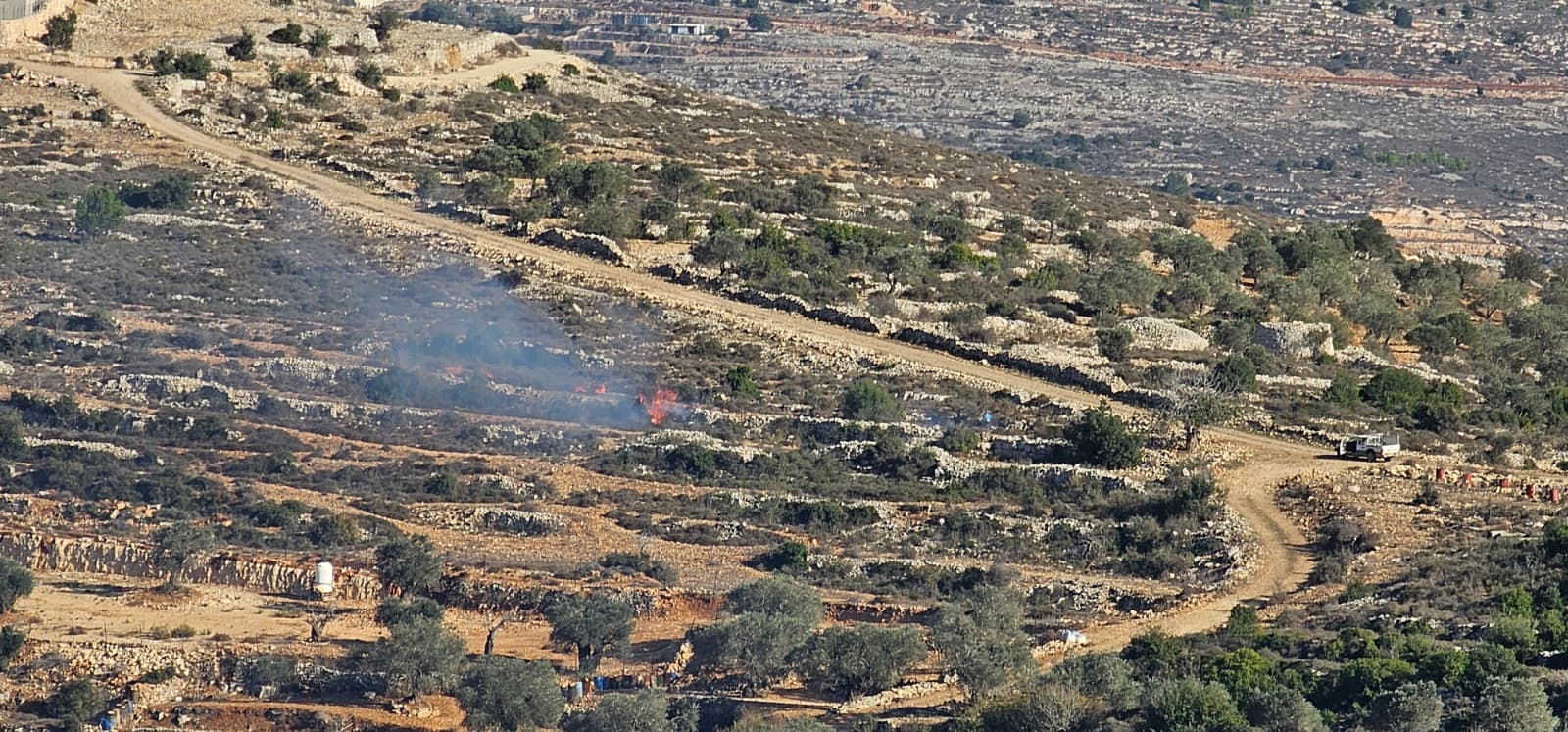 وأفاد مراسلنا بأن المستوطنين داهموا المنطقة الزراعية القريبة من البؤرة الاستيطانية الجديدة التي أقاموها قبل أشهر قليلة، وأشعلوا النيران في عدد من أشجار الزيتون، وأراضي المواطنين، ما ألحق أضرارا كبيرا فيها.