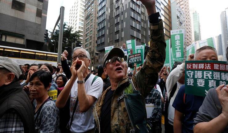 وبدأت الاحتجاجات كرد غاضب على قانون التسليم الذي جرى تعليقه لكنها توسعت لاحقا للمطالبة بمزيد من الديمقراطية واستقالة كاري لام الرئيسة التنفيذية لهونغ كونغ.