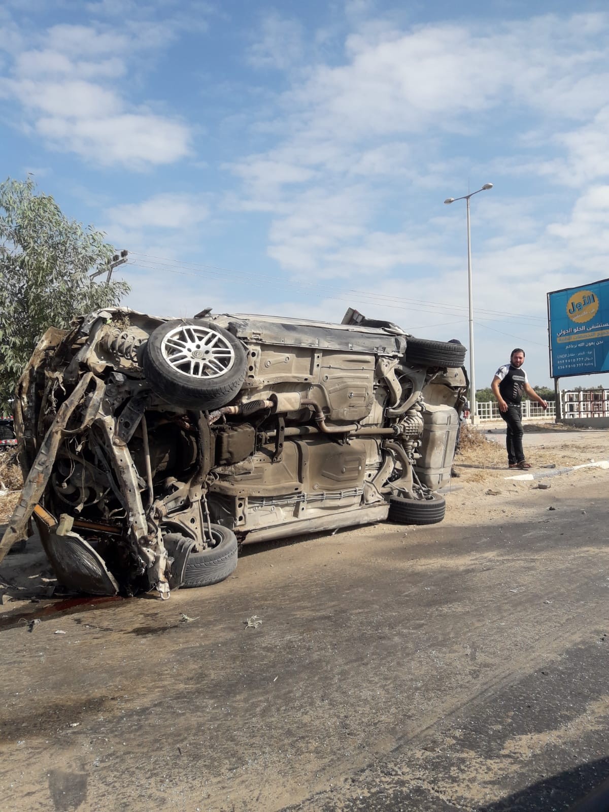 وحول تفاصيل الحادث، أفاد المقدم فهد حرب مفتش تحقيقات حوادث السير في المحافظات الجنوبية للوطن أن مركبة من نوع أوبل قيادة السائق خالد عبد الرحمن ابو شملة (55 عام) ويركب خلفه نجله المواطن ومتجه بها من الجنوب باتجاه الشمال على شارع صلاح الدين ولدى وصوله مقابل جسر وادي غزة فقد السائق السيطرة علي آلة القيادة نتيجة لخلل فني بانفجار الإطار الأمامي الأيسر للمركبة.