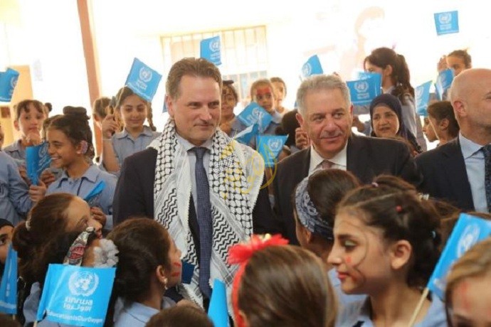 بيروت: افتتح المفوض العام لوكالة الاونروا بيير كرينبول، اليوم الخميس، العام الدراسي الجديد لمدارس الاونروا في لبنان في احتفال اقيم في مدرسة اليرموك في مخيم برج البراجنة بحضور سفير دولة فلسطين في لبنان اشرف دبور، وممثلة بعثة الاتحاد الاوروبي كريستينا ماتيو، والمدير العام للوكالة في لبنان كلاوديو كوردوني، وممثل رئيس لجنة الحوار اللبناني الفلسطيني عبد الناصر ايي، ورئيس بلدية برج البراجنة عاطف منصور، ورئيس بلدية حارة حريك زياد واكد.